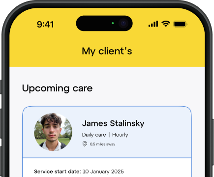 Once approved, local clients searching for your skills can find and contact you directly. Our smart matching system connects you with people who genuinely need your care specialties.